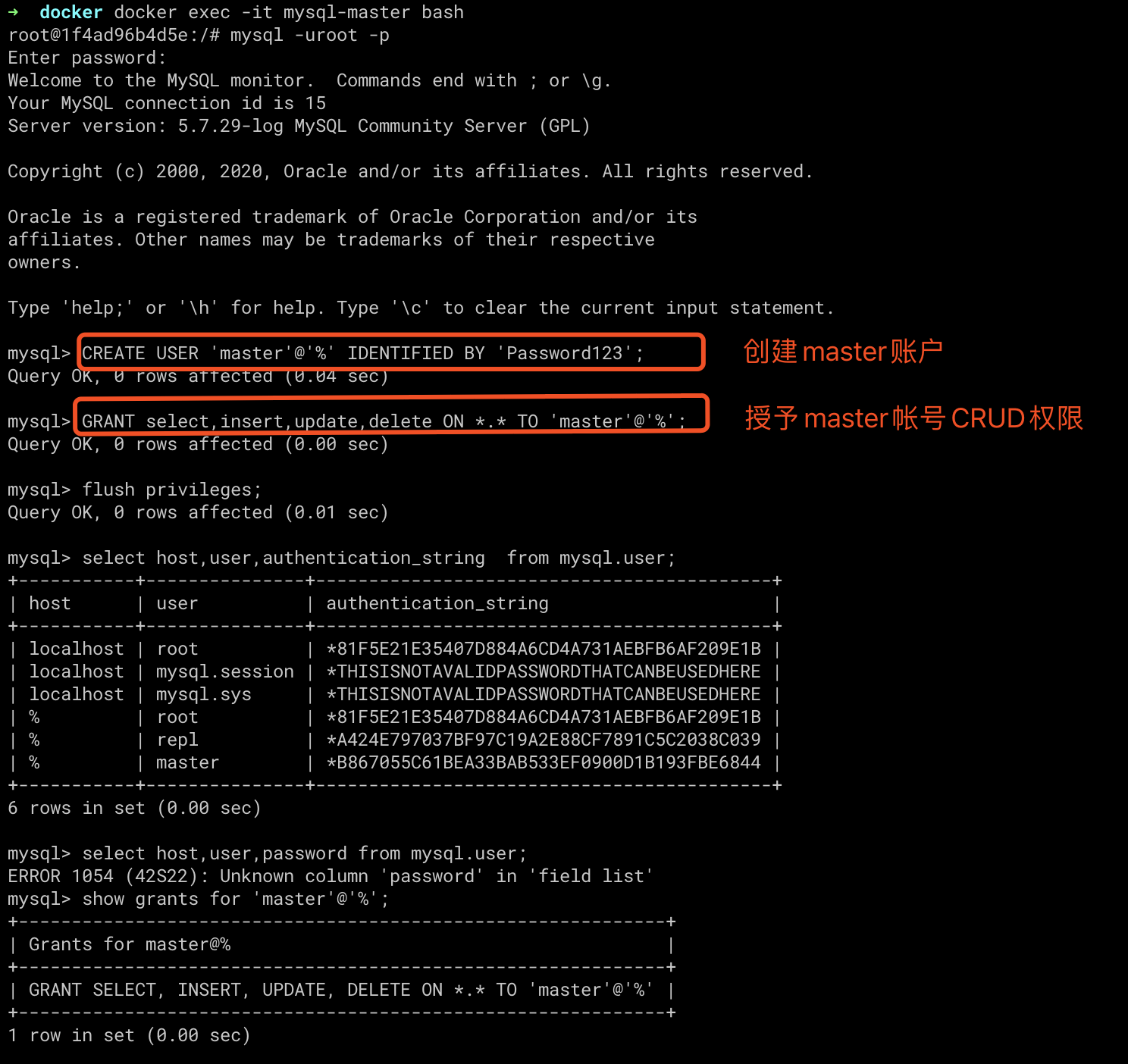 CREATE USER 'master'@'%' IDENTIFIED BY 'Password123';