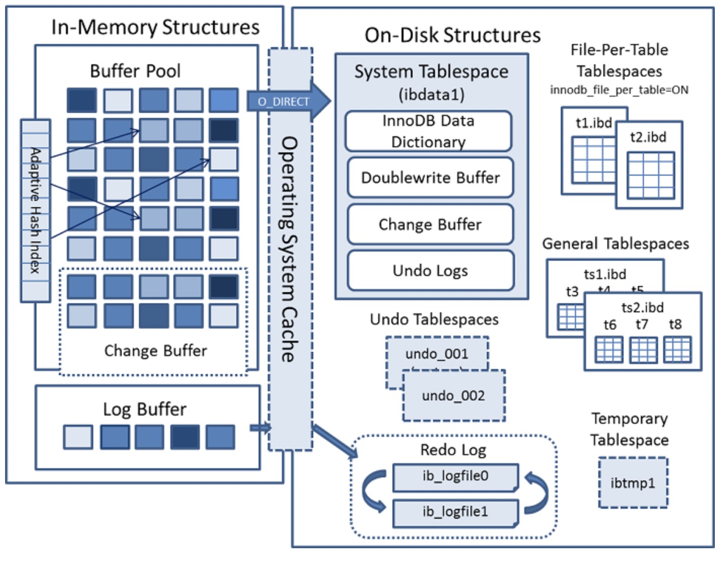 Doublewrite Buffer:位于系统表空间的一个存储区域,InnoDB在BufferPool中刷新页面时,会将数据页写入该缓冲区后才会写入磁盘。
