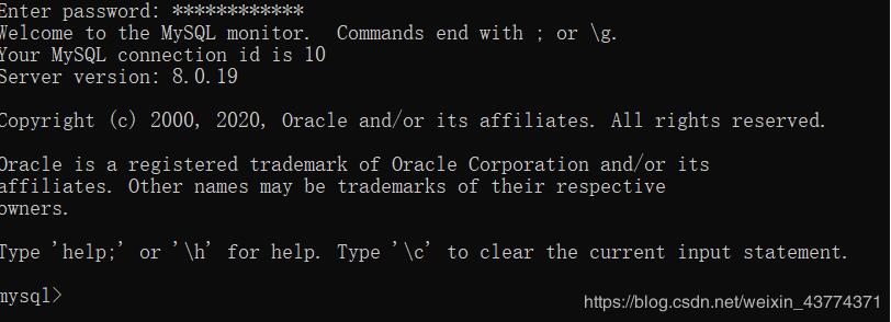 输入完密码正常就会进入MySQL的命令模式了