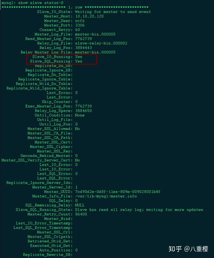 另外必须注意的是 slave_io_runing 以及 slave_sql_runing 都同时必须为 yes 才行!!!