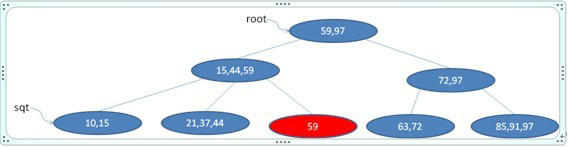 首先找到59所在叶节点(第三个节点),删除之,如下图