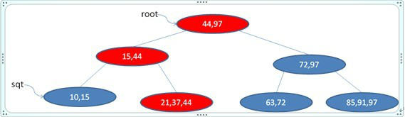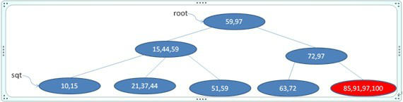 首先找到97所在叶节点(最后一个节点),删除之,然后修改该节点的父辈的键字为91(只有删除树中最大数时要做此步),如下图