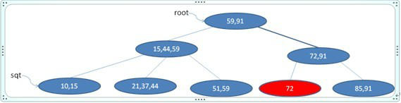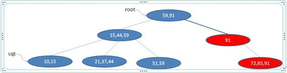 首先找到91所在叶节点(最后一个节点),删除之,如下图