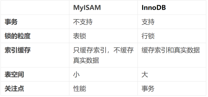 说到数据库的并发问题,就要提一下MySQL的存储引擎。MySQL的存储引擎有很多种,最常用的还是MyISAM和InnoDB,它们的区别如下: