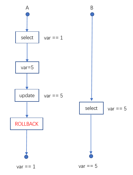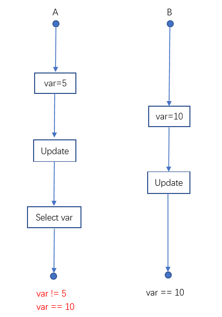 在并发环境下,容易造成并发一致性问题,导致隔离性被破坏。假设目前有两个事务,分别命名为A和B,在并发环境下,容易出现以下问题。 丢失更新:A、B同时修改数据,A先,B后,A提交后B提交,B操作覆盖了A的操作,导致A丢失更新。