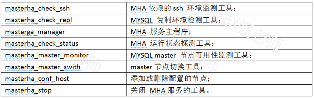 - Node节点(这些工具通常由MHA Manager的脚本触发,无需人为操作)