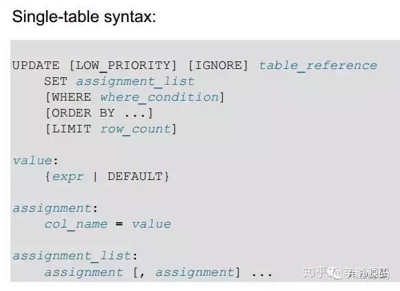 看起来,语法是完全没有问题,翻了翻MySQL官方文档的update语法: