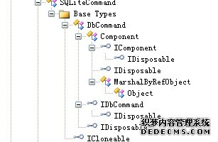 运行,显然行。那我们就和SQLCommand对比一下吧。粗略看了一下,SQLCommand有的SQLiteCommand都有,莫非SQLiteCommand就是继承自SQLCommand?或者两者是继承自同一个接口,从”System.Data.SQLite”,”System.Data.SQLClient”来看,这两者应该是继承自同一个接口了。看看能不能找着证据。