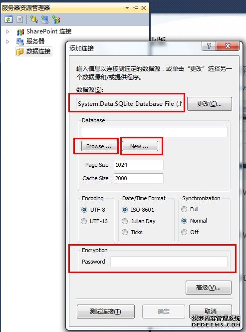 安装后,在VS2010中新建数数库链接就会看到有System.Data.SQLite的链接,在这里你可以创建和打开Sqlite数据库: