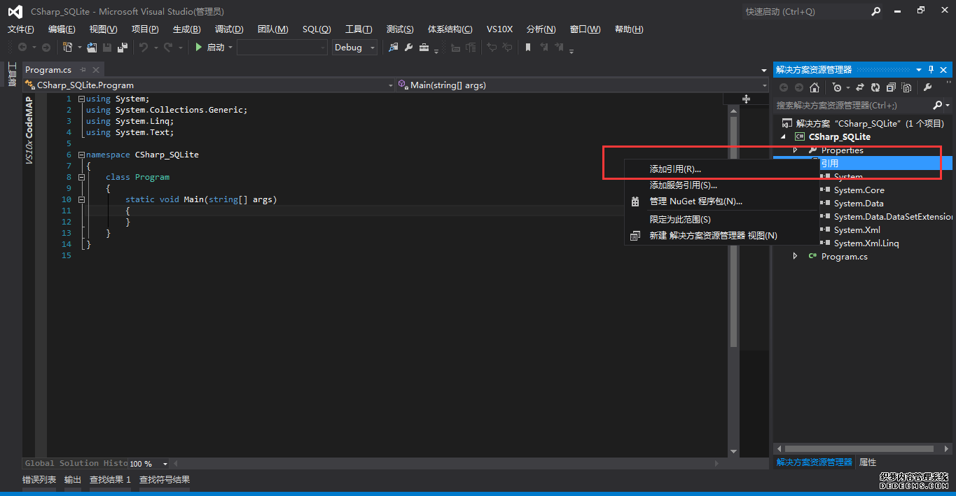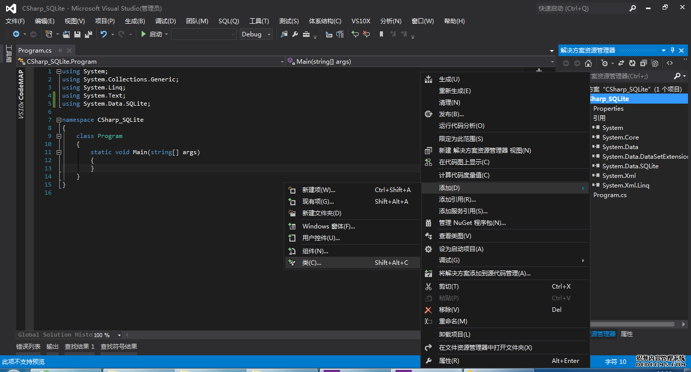 将下载的System.Data.SQLite.DLL复制到新建项目的路径下