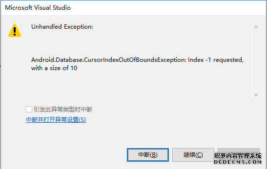 Xamarin.Android 使用 SQLite 出现 Index -1 requested, with a size of 10 异常,