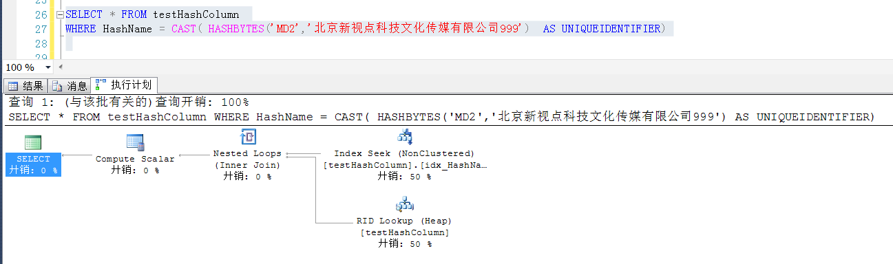 参考如下查询,就可以使用HashName计算出来的值与计算列做比较,在一定程度上可以减少检索字段索引的大小,又能达到目的的效果