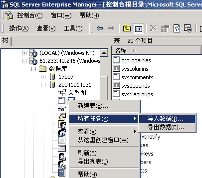 12、在表上点击右键,选择所有任务,选择导入数据,如下图所示: