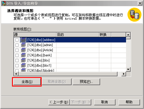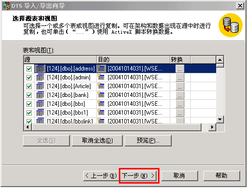 17、选择您想要导入的表、视图等数据内容,如下图所示: