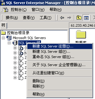 2、点SQLserver组右键,选择新建SQLserver注册,如下图: