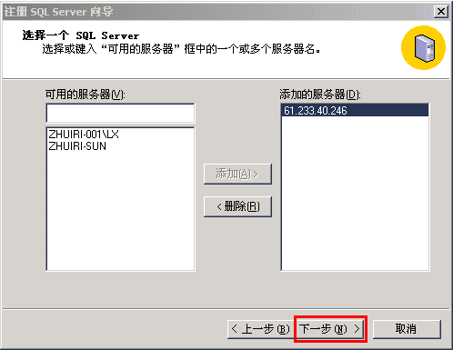 5、您添加的服务器IP即可增加到右侧,然后点下一步,如下图: