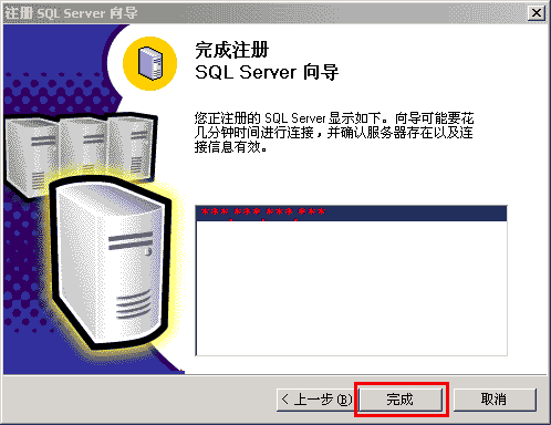 8、完成SQLserver注册,点击完成,如下图:
