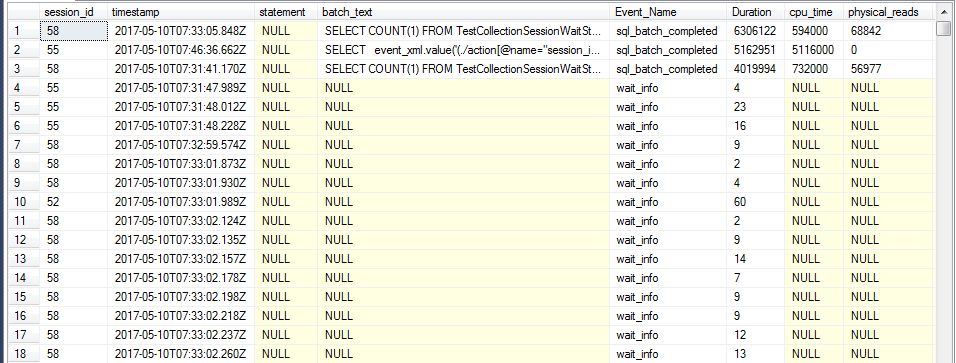 WHERE event_xml.value('(./@name)', 'varchar(1000)') in ('wait_info','wait_info_external')