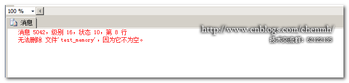 一开始是在alwayson的环境中删除,提示由于副本的原因无法删除。后面单独在一个非alwayson的环境下的数据库测试同样是无法删除,起初以为是创建了内存表的原因后面测试仅仅创建文件组和文件然后来删除文件同样是无法删除,个人猜测有可能是buffer的缘故;在buffer中一直存在内存表相关的文件存在,通过执行DBCC DROPCLEANBUFFERS命令也无法清空buffer中的内存表对象。使尽浑身解数还是无法将它删除掉,最后只能投降了!!!线上环境等不下去;只能使用最不愿使用的生成表结构导出数据的办法来重建新的数据库。