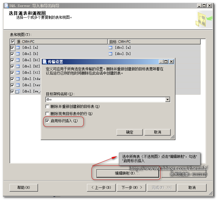 注意:如果使用“导出数据\导入数据”的方法同步数据,注意勾选“启用标示插入”