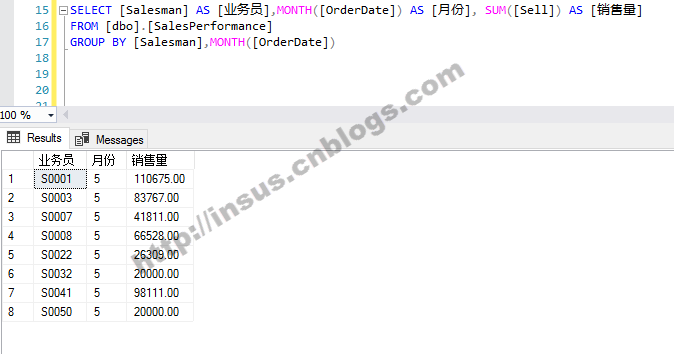 使用SUM和GROUP BY统计各个业务员的销售额: