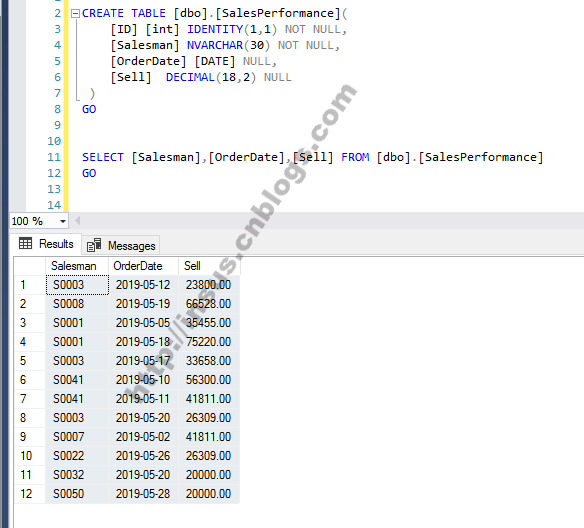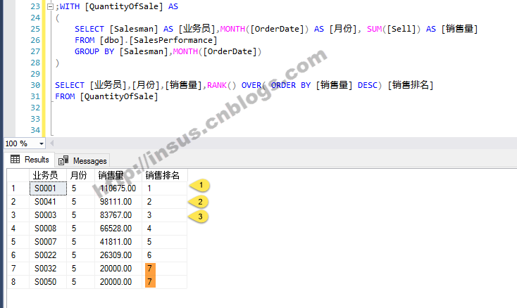计总与排名SUM和RANK函数,sumrank函数 准备一些数据: CREATE TABLE [ dbo ] . [ SalesPerformance ] ( [ ID ] [ int ] IDENTITY ( 1 , 1 ) NOT NULL , [ Salesman ] NVARCHAR ( 30 ) NOT NULL , [ OrderDate ] [ DATE ] NULL , [ Sell ]...