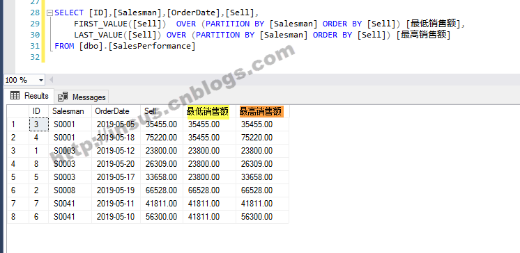 计算获取最小值和最大值,获取最小值最大值 比如,在下面的销售业绩中,统计业务员的销售业绩中最大值和最小值。 下面是业务数据: CREATE TABLE [ dbo ] . [ SalesPerformance ] ( [ ID ] [ in...