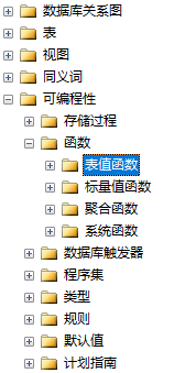 在 SQL 中位置在 数据库名称 --> 可编程性 --> 表值函数