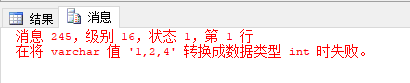 我看了下错误信息,很明显是因为 IN 的字段是一个 Int 类型,强制把 varchar '1,2,3,4' 转换成 Int 语法是不允许的,所以查询失败。如下解决思路告诉我了同事。