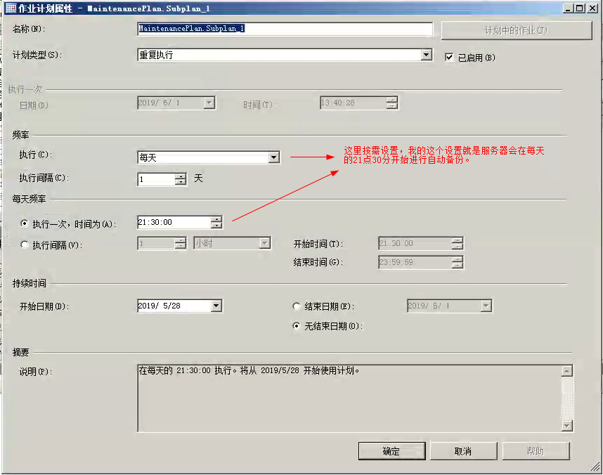 9、现在要做的是给这个任务定制计划执行时间。单机右侧子计划后面的小图标(像日历的那个)。