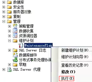 所以这里建议做完了上面的配置后,先自检一下,在左侧的“维护计划”下,单击右键,弹出菜单里点击“执行”。看看会不会出错。如果没有出错提示框,那么你可以第二天看数据包安静的睡在备份文件夹里。