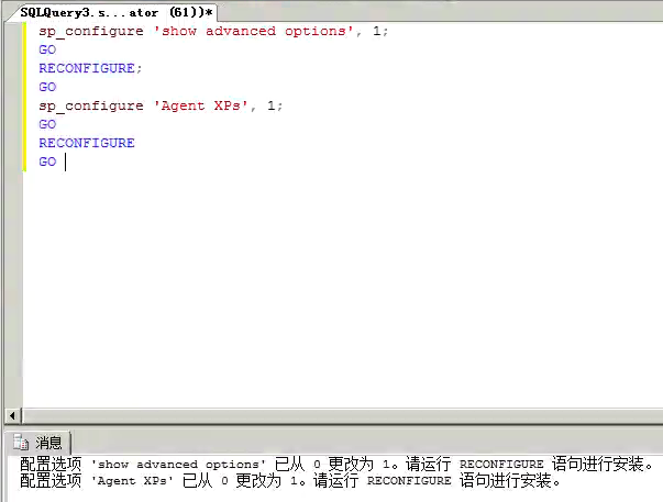 sp_configure 'Agent XPs', 1;
