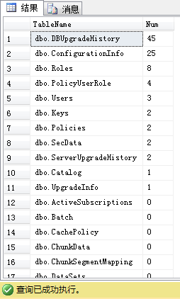 以在ReportServer数据库中运行这个脚本为例,运行结果如下图(表名、数据量):