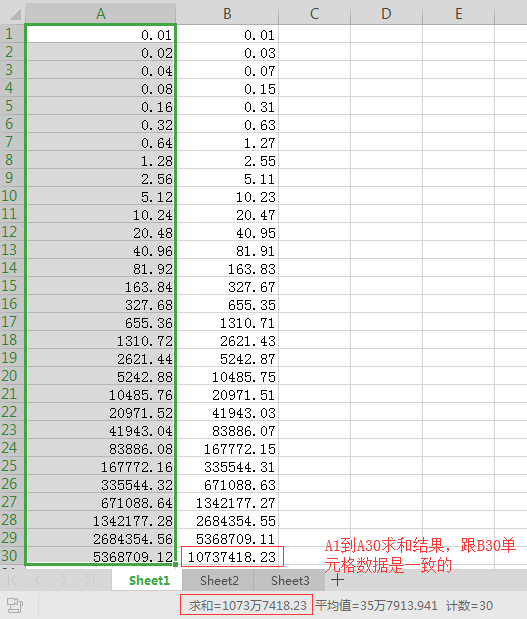 3.3 把运行结果的Money列(对应Excel的A列)和MoneyTotal列(对应Excel的B列)在Excel里面进行数据结果验证