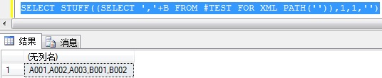 利用FOR XML PATH行转列(根据某字段分组,多行数据转成一行,并用逗号隔开),