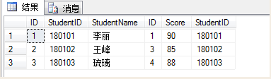 结果如下,查询结果集只返回两表匹配StudentID字段相同行。