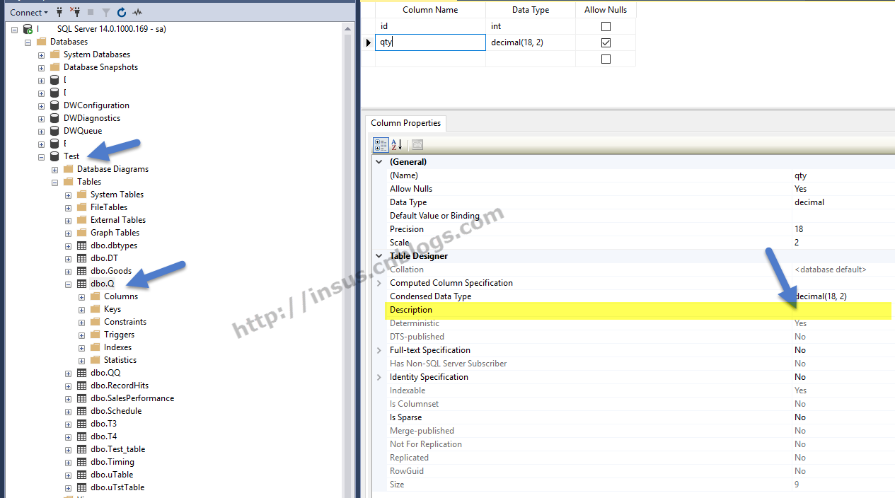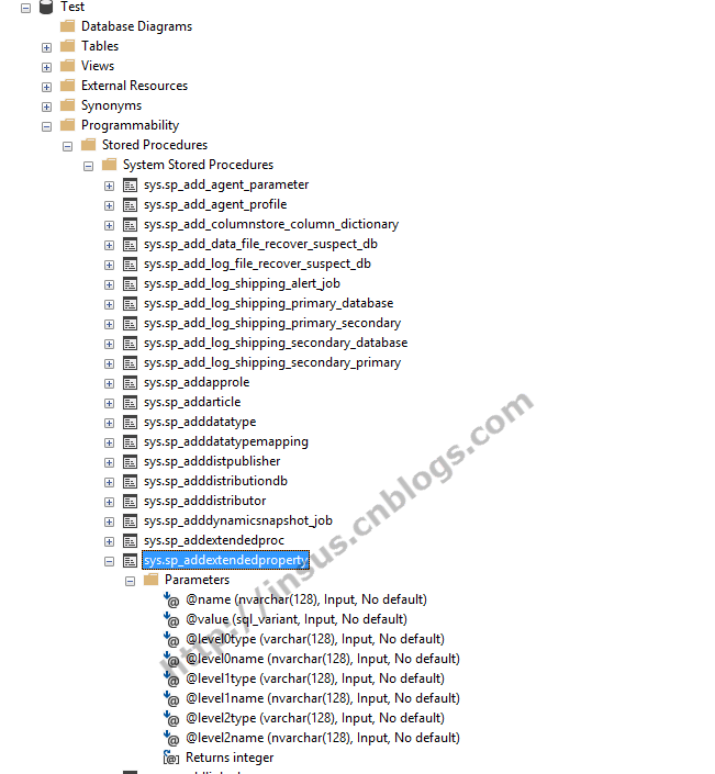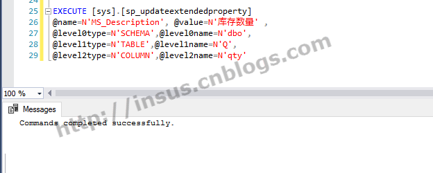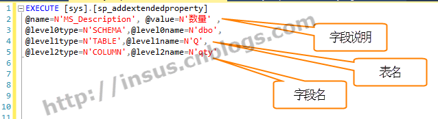MS SQL为字段添加说明, 以ms sql server 14 v17为例。 如下表dbo.Q中有一个字段'' 首先在数据库的系统存储过程列表中: 找到sys.sp_addextendedproperty,使用这个为字段添加一个说明。 EXECUTE [ s...