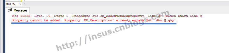 如果你不清楚MS_Description是否存在时,再次执行上面的存储过程,你会得到一个error提示: