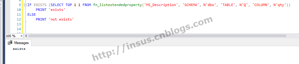 SELECT TOP 1 1 FROM fn_listextendedproperty(