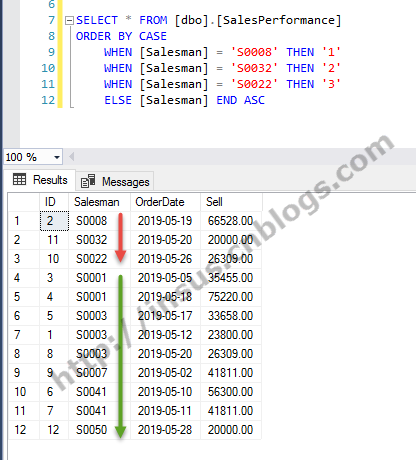 SQL查询结果自定义排序, 一般情况之下,我们可以使用ORDER BY ...ASC或DESC来做查询排序。如: SELECT * FROM [ dbo ] . [ SalesPerformance ] ORDER BY [ Salesman ] ASC GO Source Code 如果需要求某一些值先排...