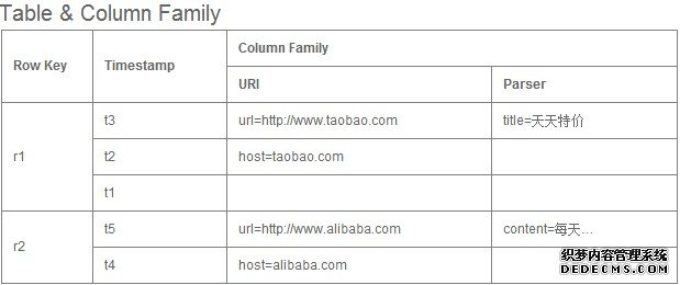 Row Key: Table主键 行键 Table中记录按照Row Key排序