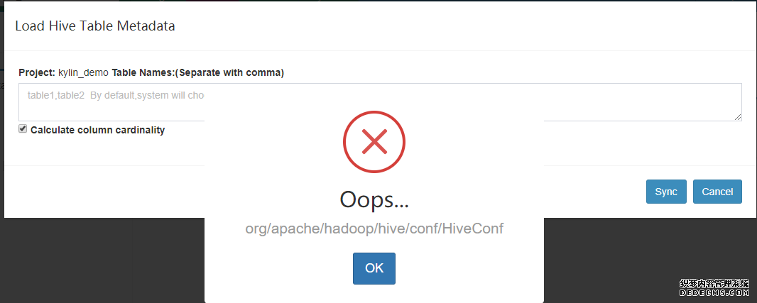 1.kylin加载hive表错误:ERROR [http-bio-7070-exec-10] controller.TableController:189 : org/apache/hadoop/hive/conf/HiveConf java.lang.NoClassDefFoundError: org/apache/hadoop/hive/conf/HiveConf 解决办法