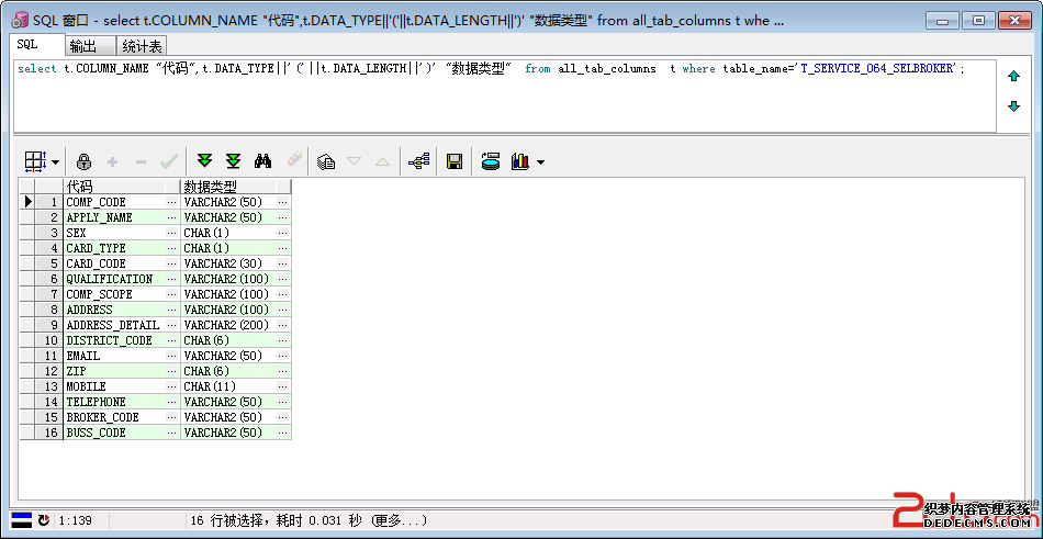 "数据类型" from all_tab_columns t where table_name='T_SERVICE_064_SELBROKER';