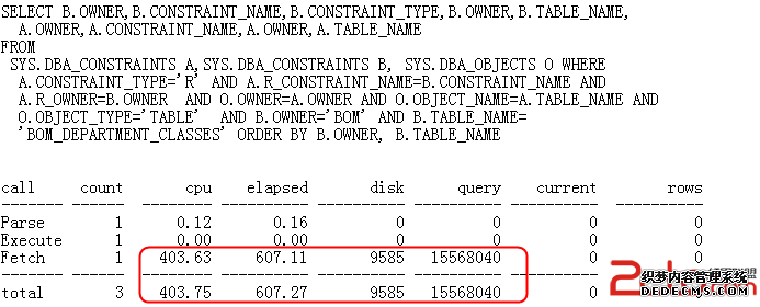 首先我获得了一个10046跟踪文件,通过tkprof格式化之后,这个SQL的输出结果展现出来。