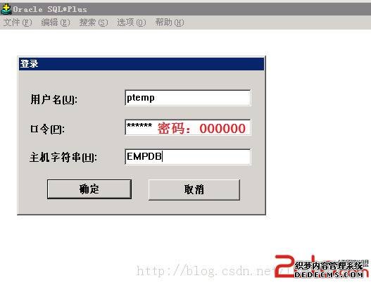 SqlPlus执行语句:conn ptemp/000000@EMPDB as sysdba