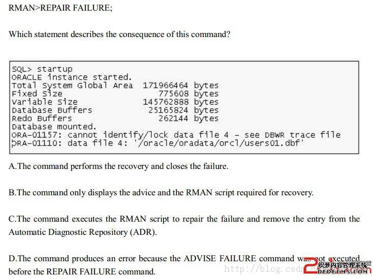 [每日一题] 11gOCP 1z0-052 :2013-09-1 RMAN-- repair failure