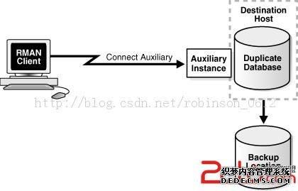 下面的图示是没有连接到target DB,也没有连接到recover catalog方式。基于这种方式实现duplicate,应指定备份文件所在的位置。
