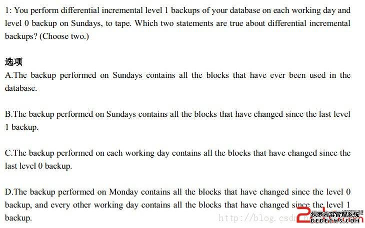 [每日一题] 11gOCP 1z0-052 :2013-08-30差异的增量备份