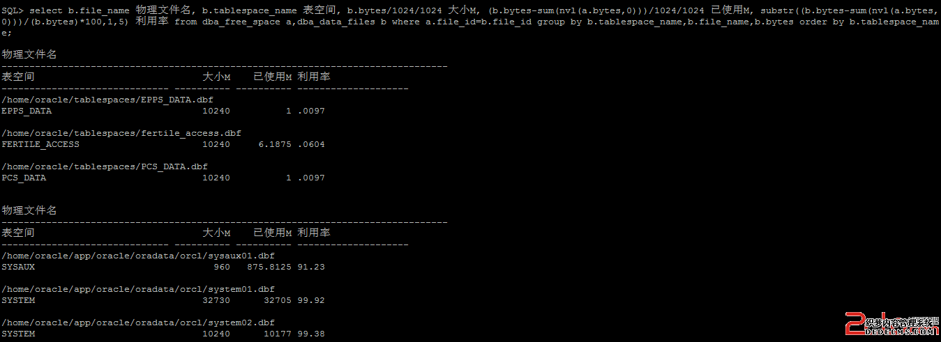 使用sysdba登录,查看表空间使用率。如下:
