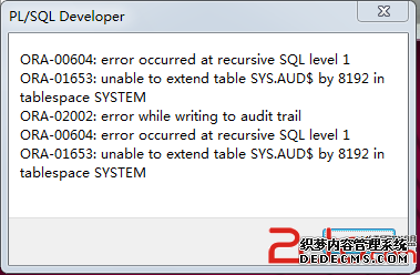 出现上述错误,发现system表空间不足导致。